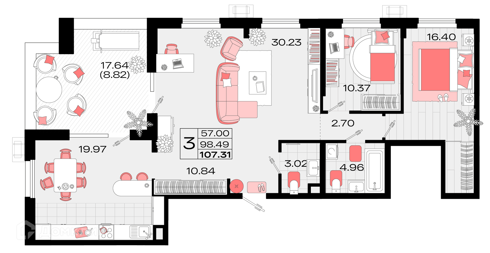- Общая площадь: 106.5 м²