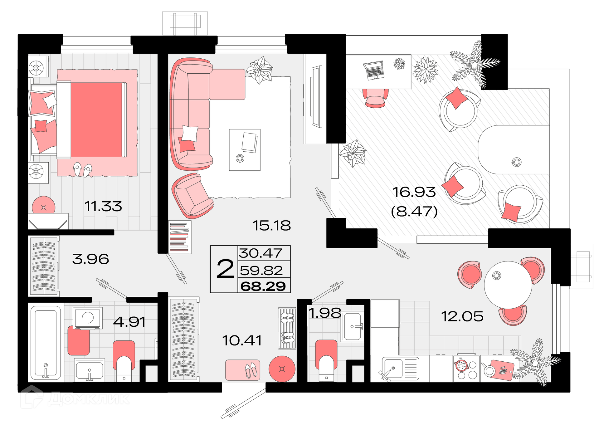 - Общая площадь: 68.29 м²