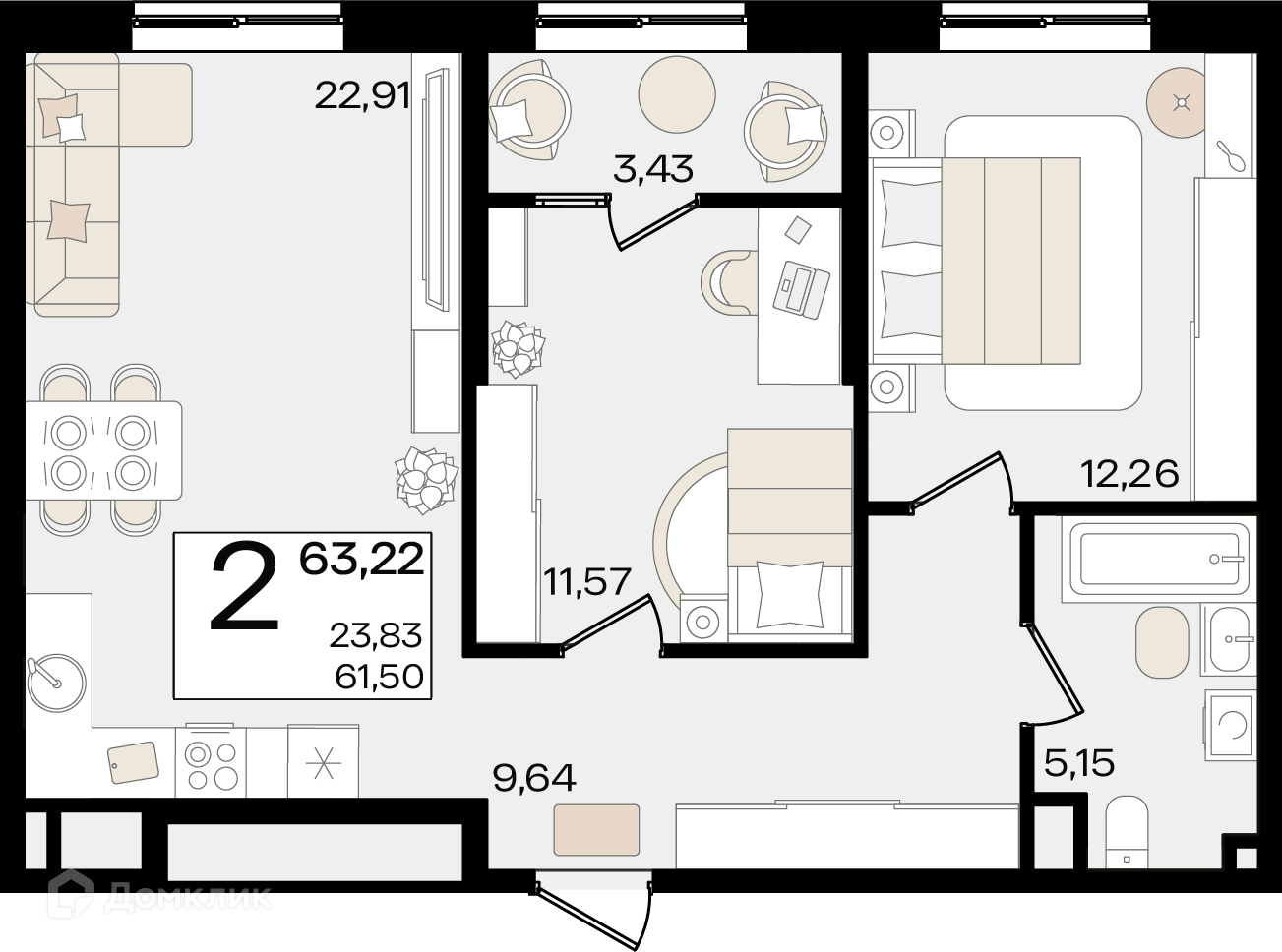Площади квартир