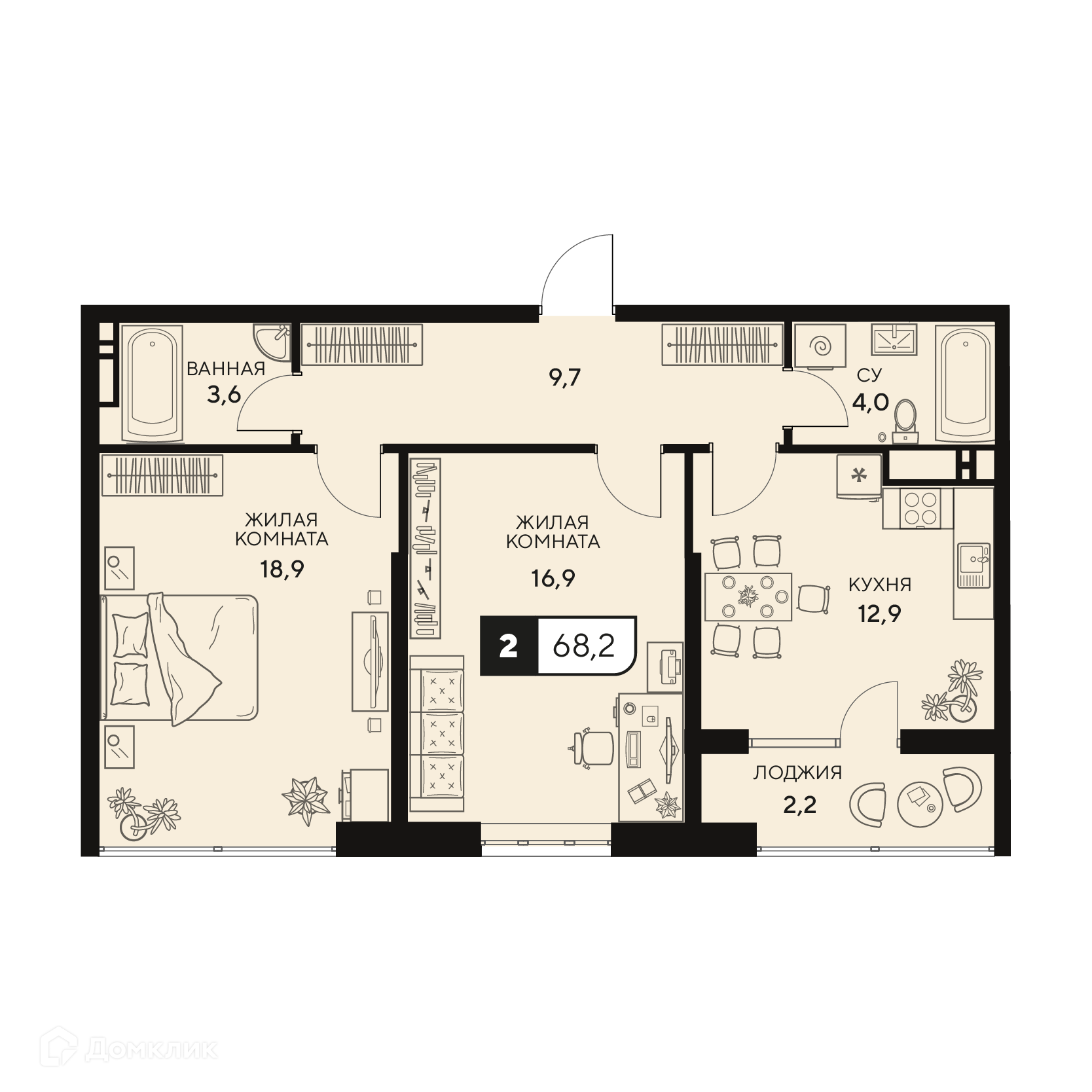 - Общая площадь: 68.2 м²