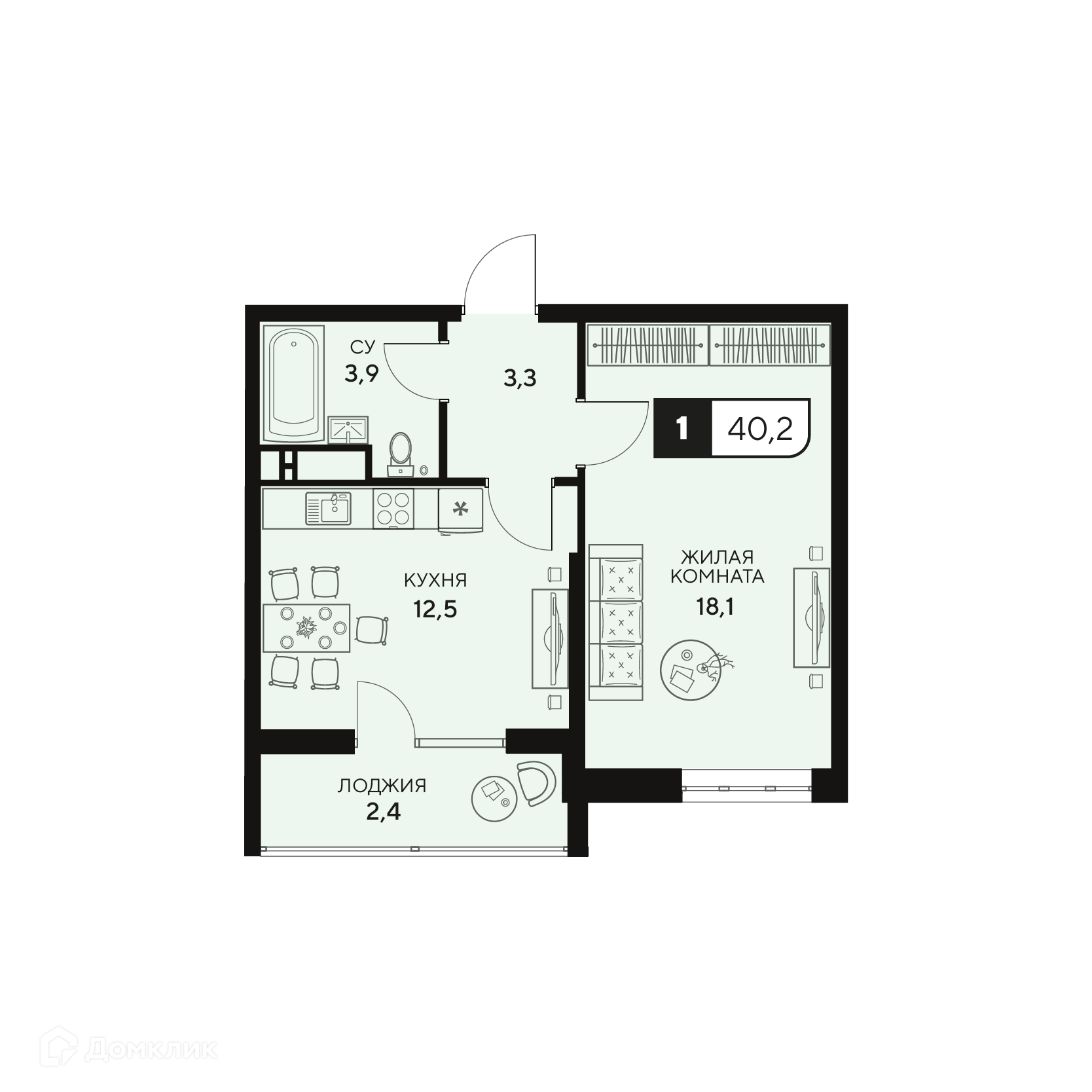 - ✅ Общая площадь: 40.2 м².