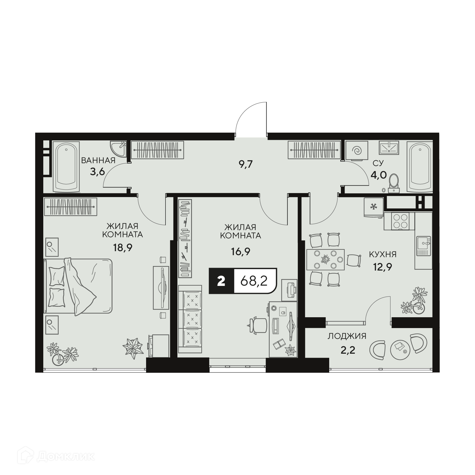- Общая площадь: 68.2 м²