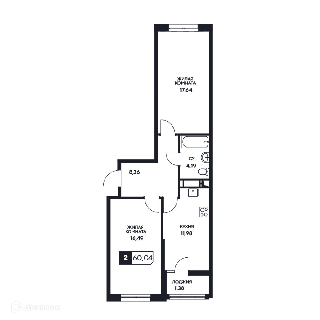 Планировка 2 комн. в ЖК"Центральный"