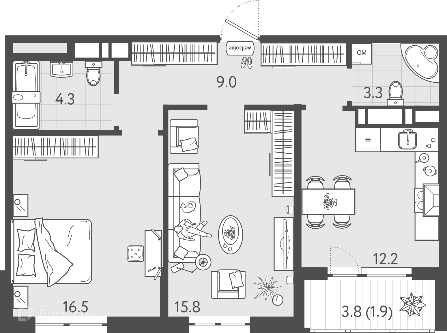 Площади квартир