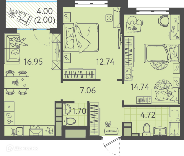 ✅ Кухня: 16.95 м² — идеальна для семейных ужинов.