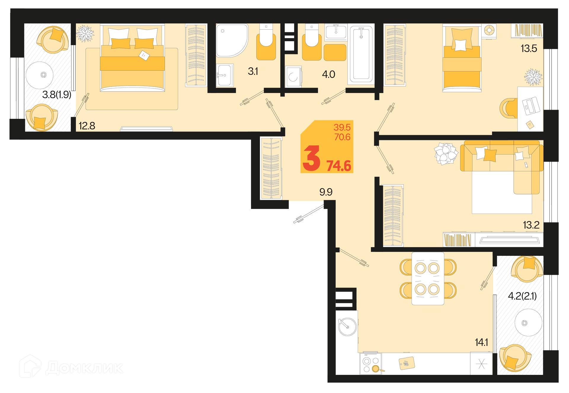 Площади квартир