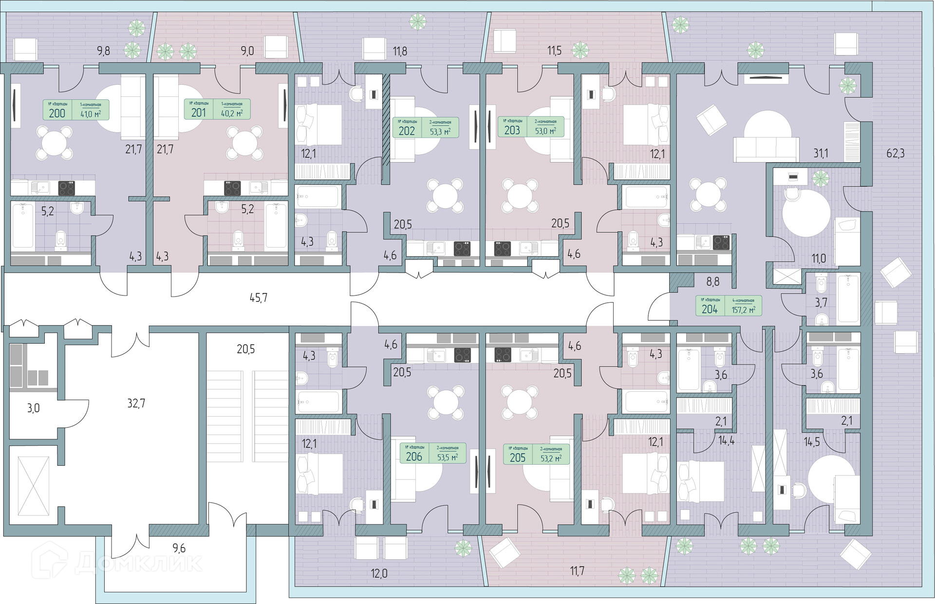 Площади квартир