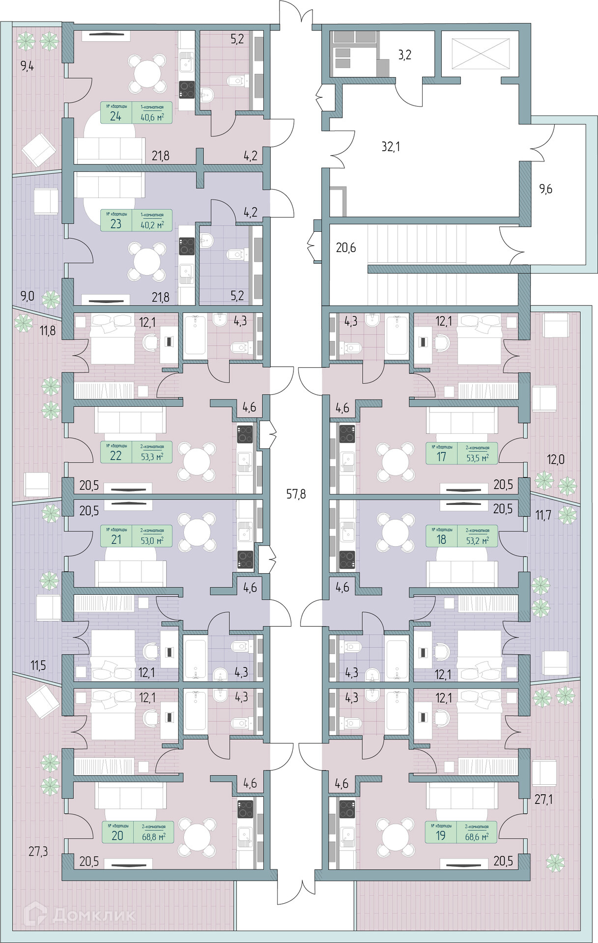 Площади квартир
