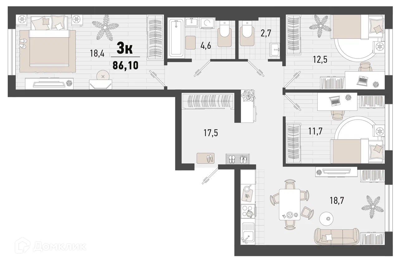 - Общая площадь: 86.1 м²