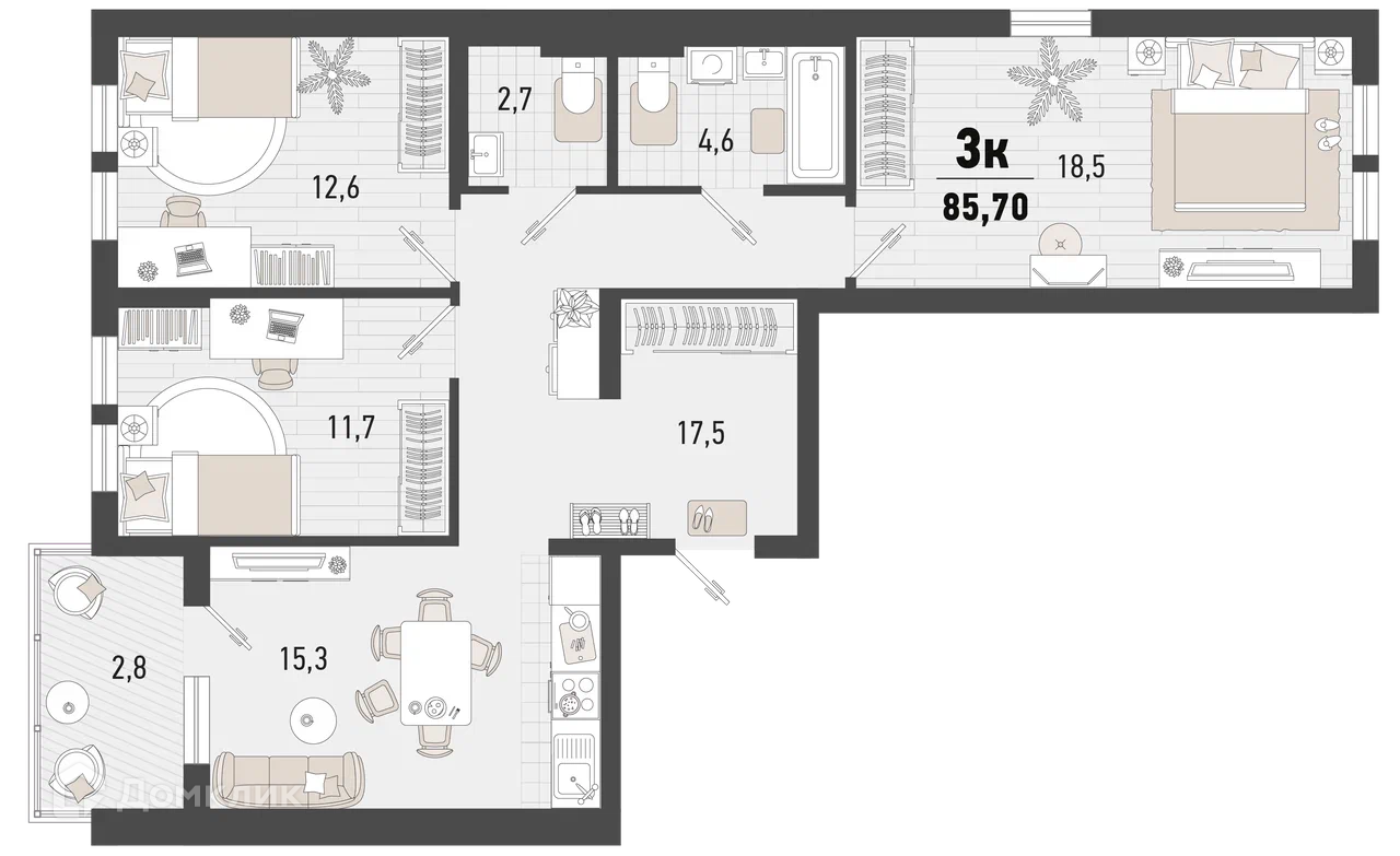 Планировка 2 комн. в ЖК Барса