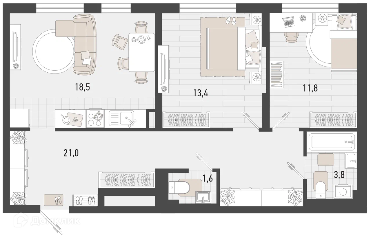 - ✅ Кухня: - м² — место для кулинарных шедевров.