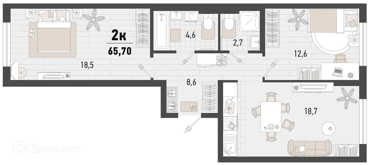 - Общая площадь: 65.7 м²