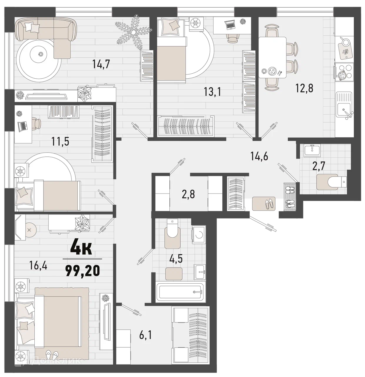 - Общая площадь: 99.2 м²