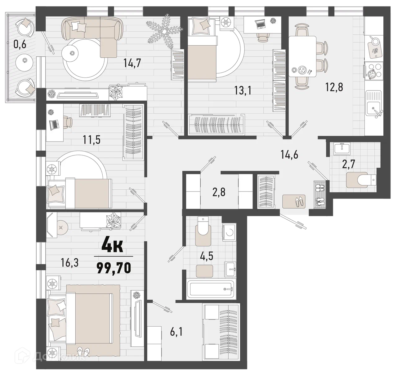 - Общая площадь: 99.7 м²