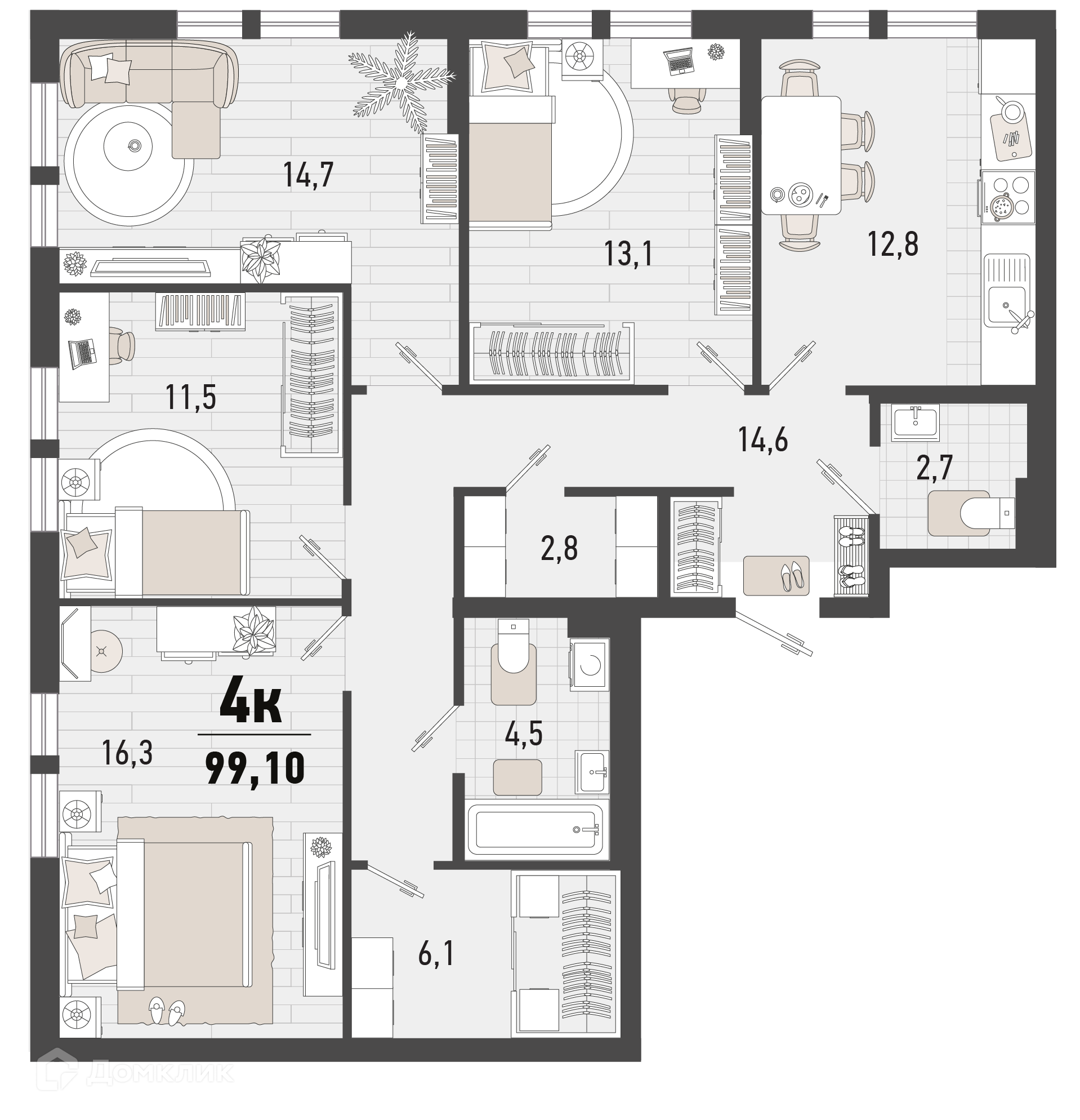 - Общая площадь: 99.1 м²