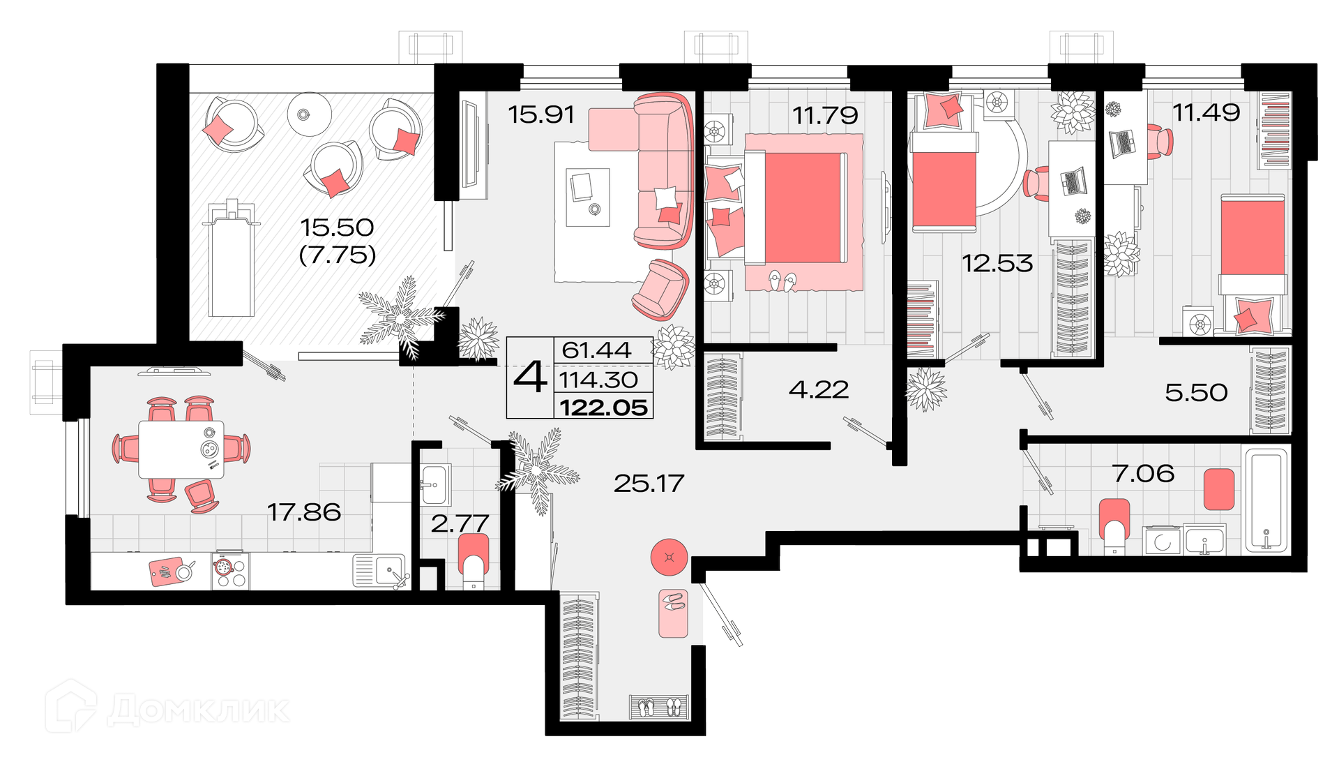 - Общая площадь: 122.05 м²