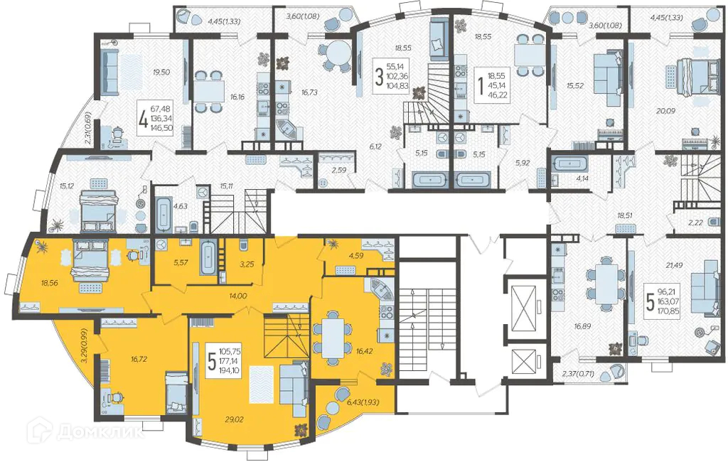 Площади квартир