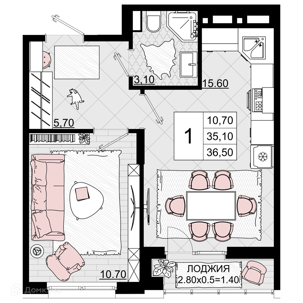 - Количество комнат: 1-комнатная квартира