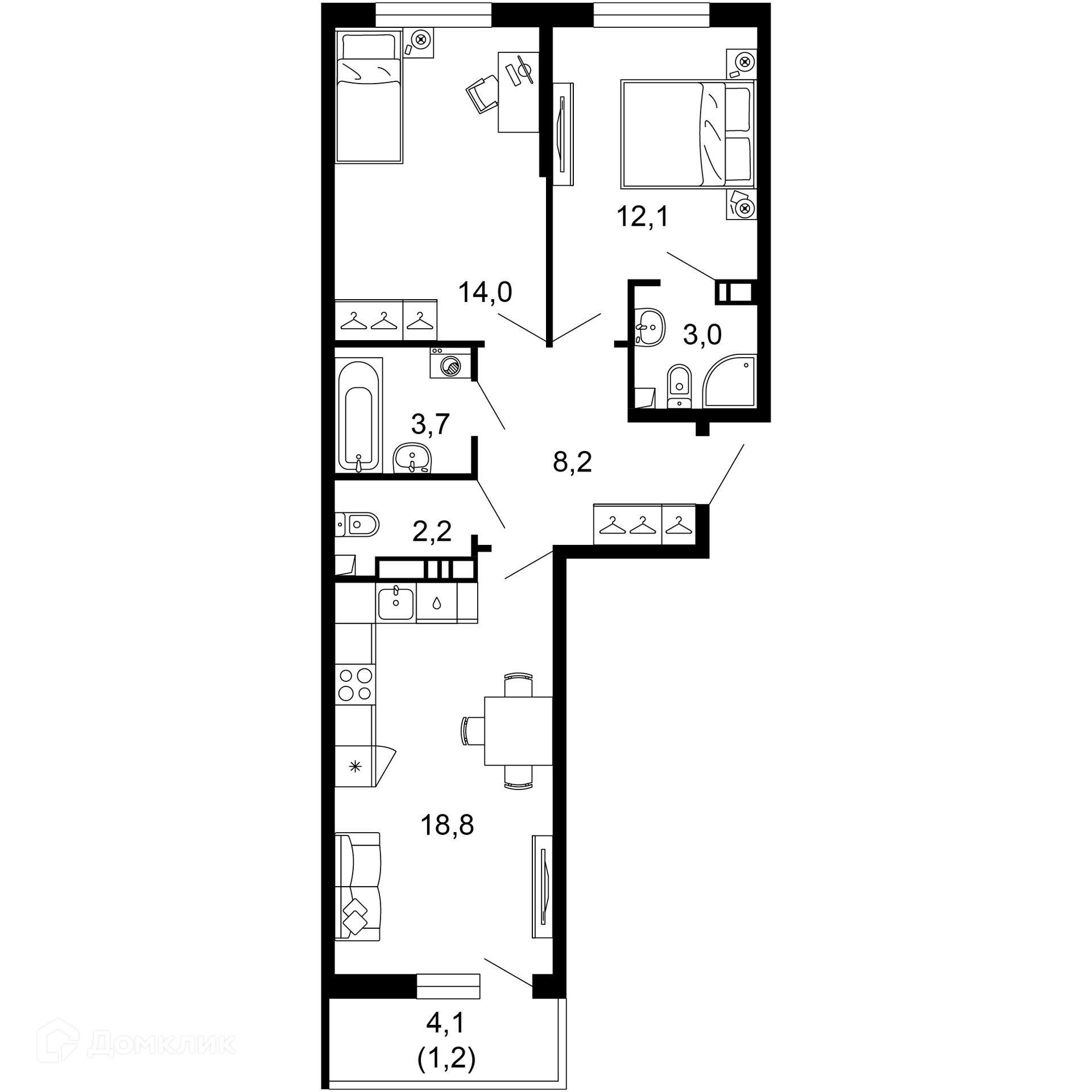 - ✅ Кухня: 18.8 м² — идеальна для семейных ужинов.