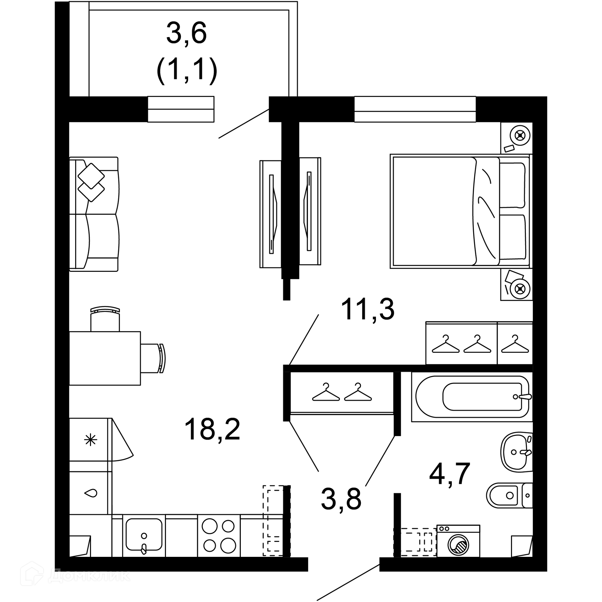 - ✅ Уютная жилая площадь: 11.3 м².