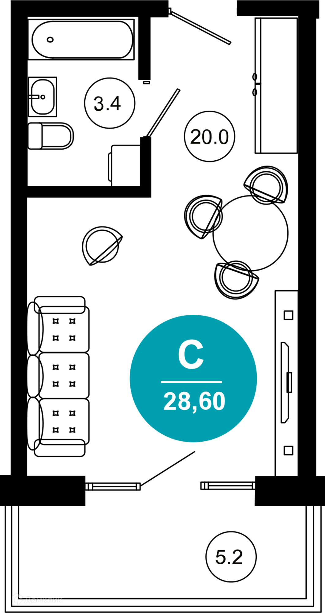 - ✅ Кухня: 0 м² — идеальна для семейных ужинов.