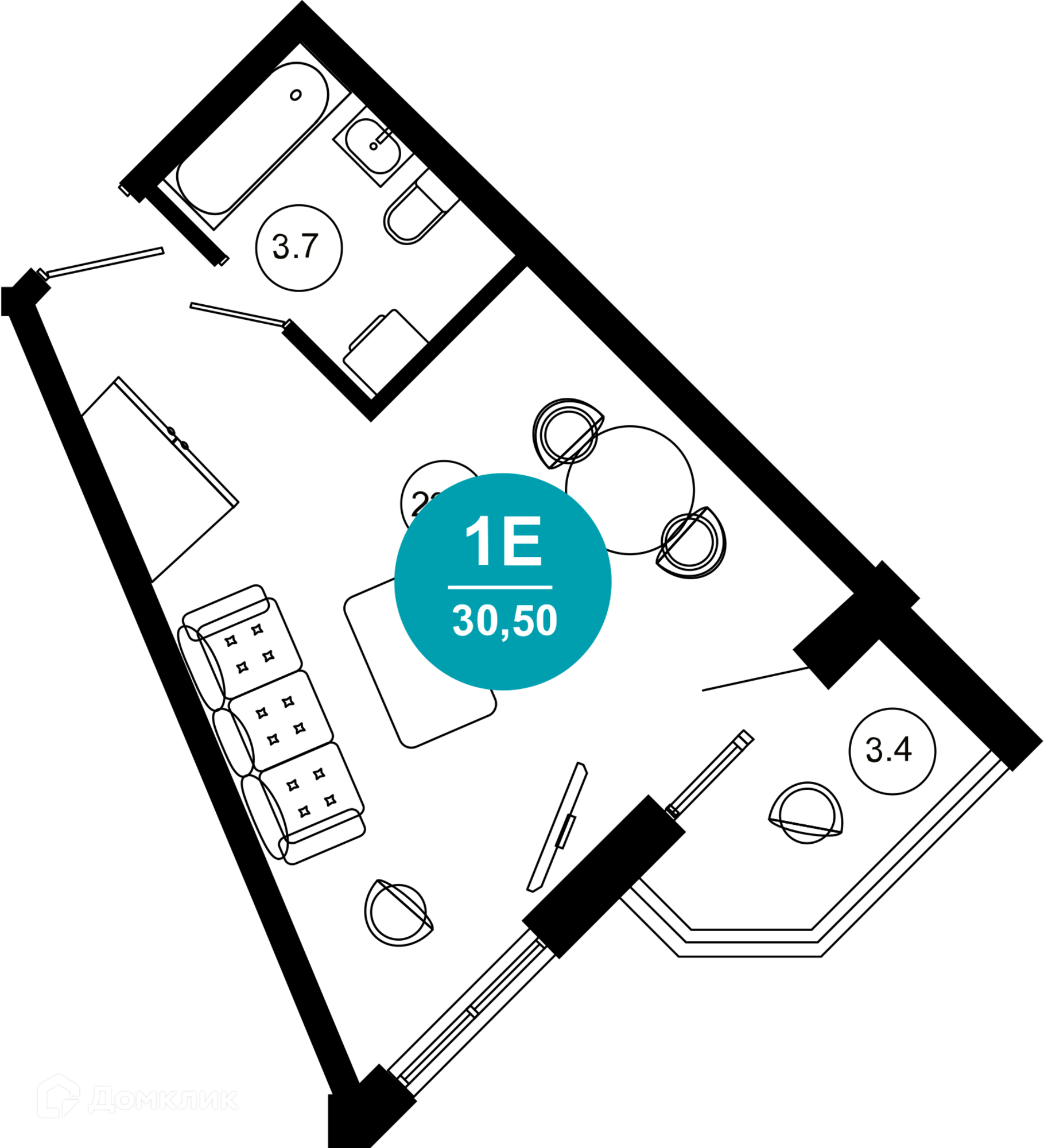- Жилая площадь: 23.4 м²