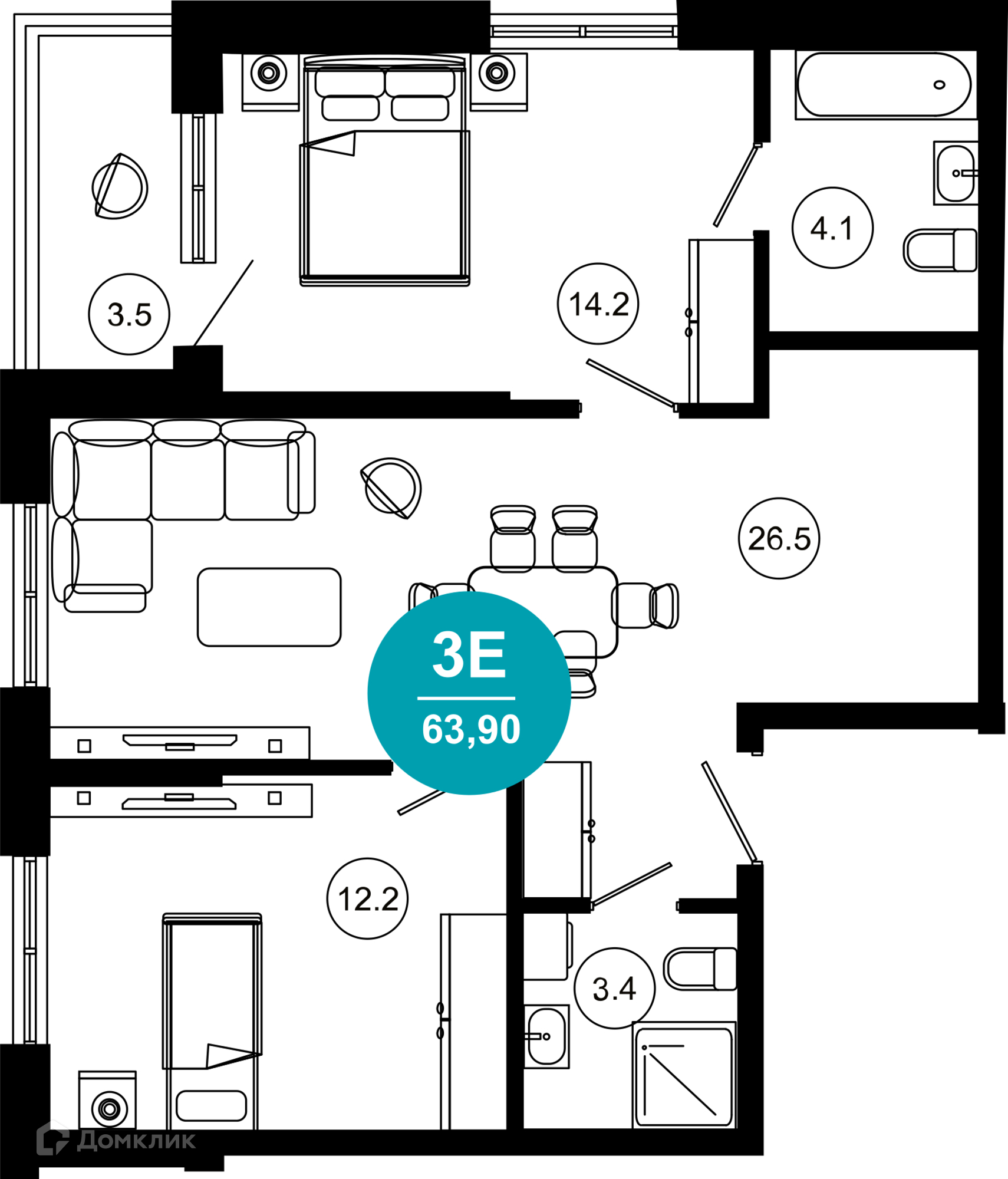 Планировка 3 комн. в ЖК Гостиничный комплекс "Нескучный сад"