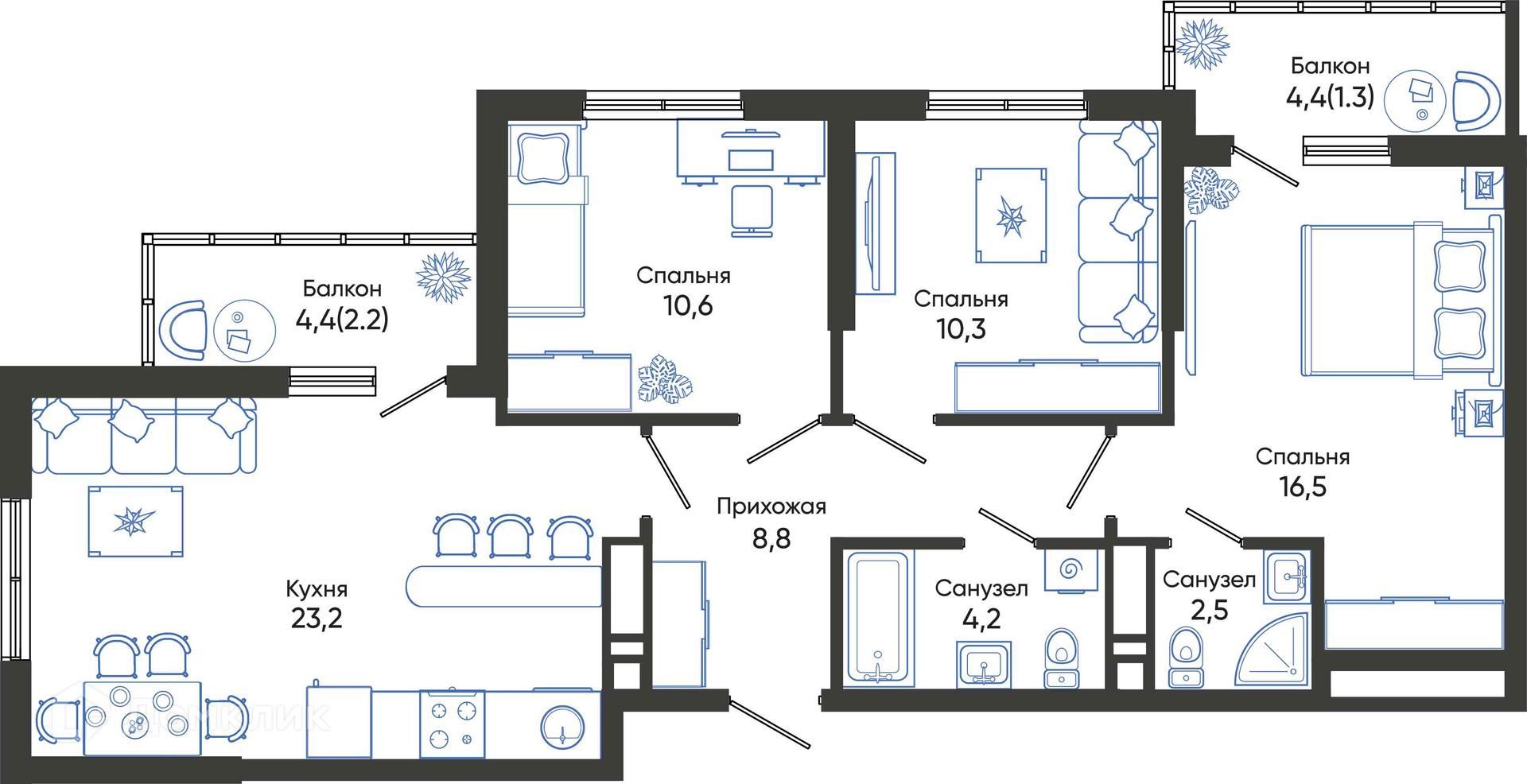 Площади квартир