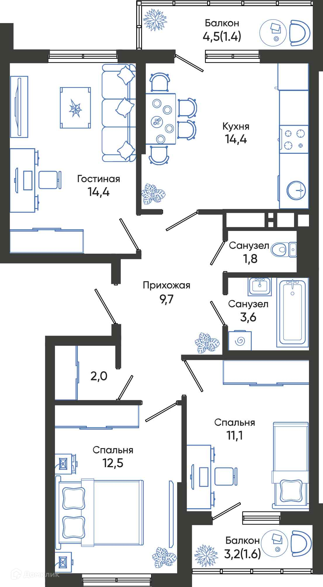 Площади квартир