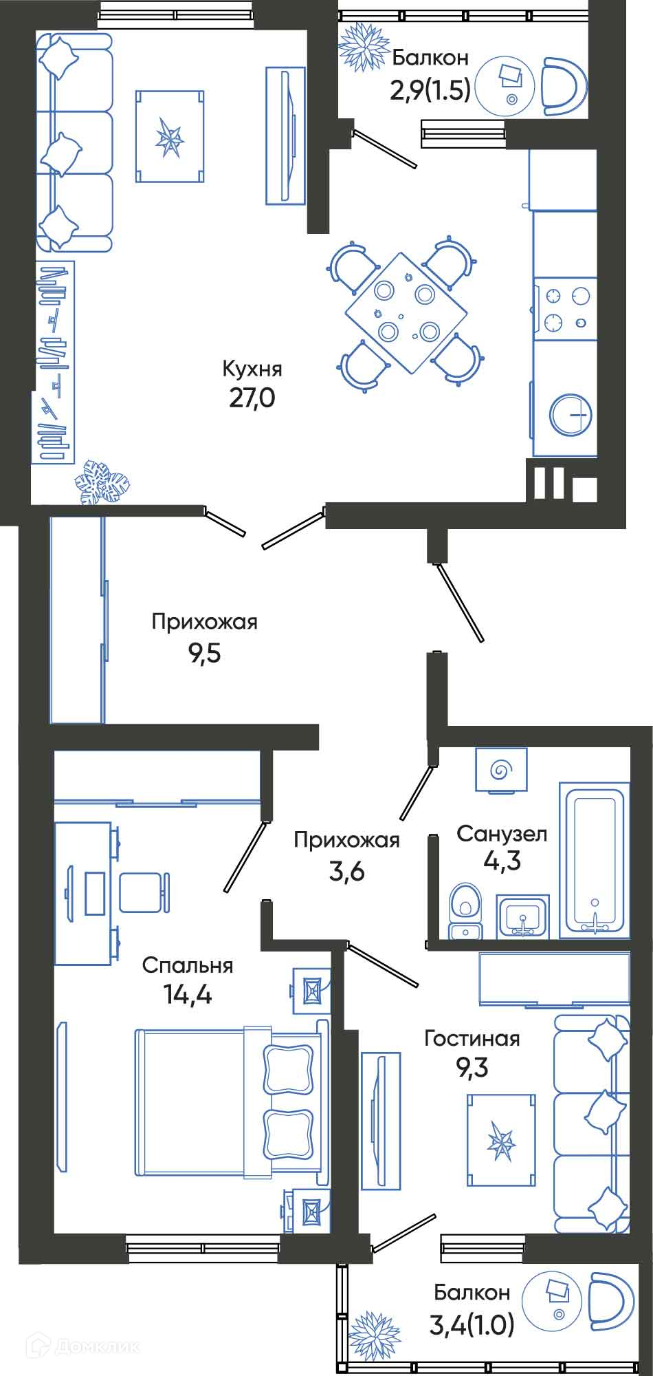 Площади квартир