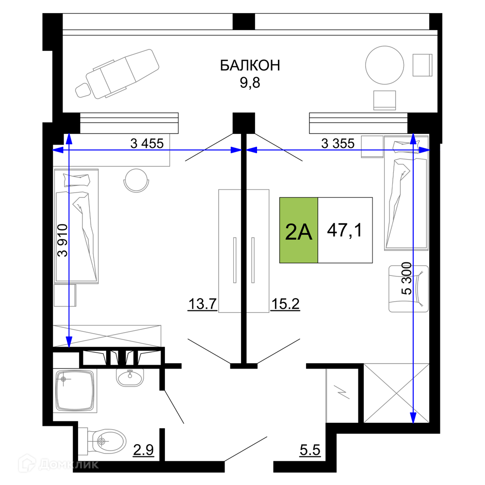 Доступна к покупке 2-комнатная квартира в новом жилом комплексе "ЖК Гостиничный комплекс «Мореград»" 🏢. Квартира расположена на 2-м этаже 10-этажного дома. Прекрасный выбор для семьи.