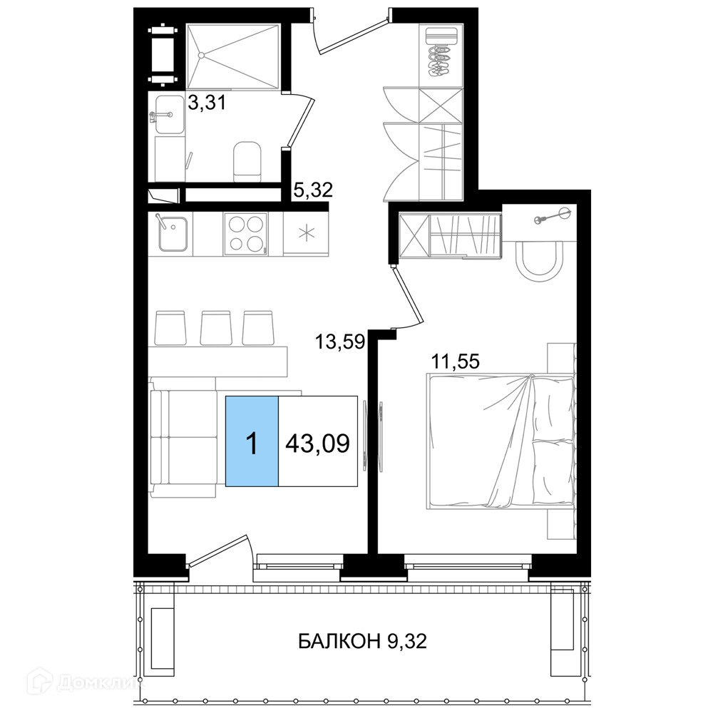 42.59 м²