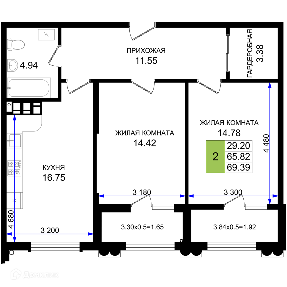 Площади квартир