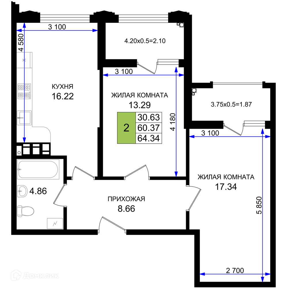 Площади квартир