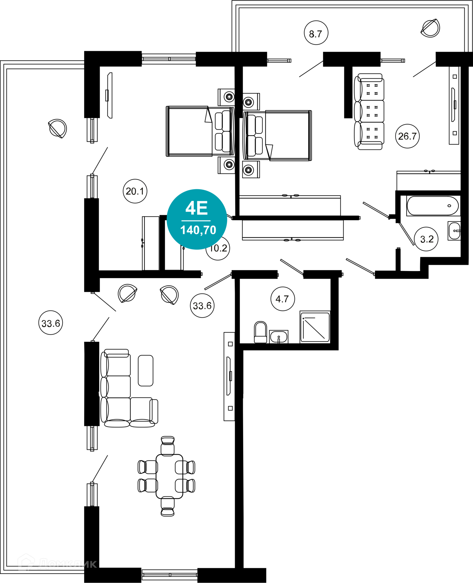 - Общая площадь: 140.7 м²