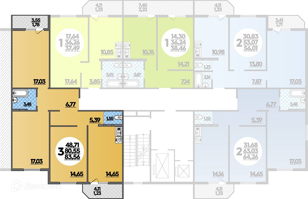 Площади квартир