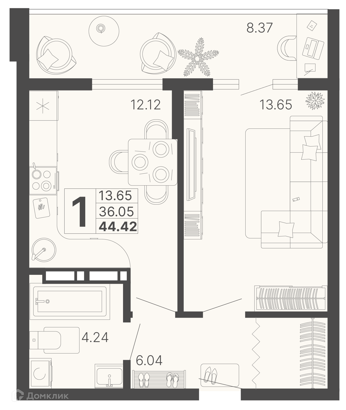 - 🌞 Большие окна наполняют помещения естественным светом.