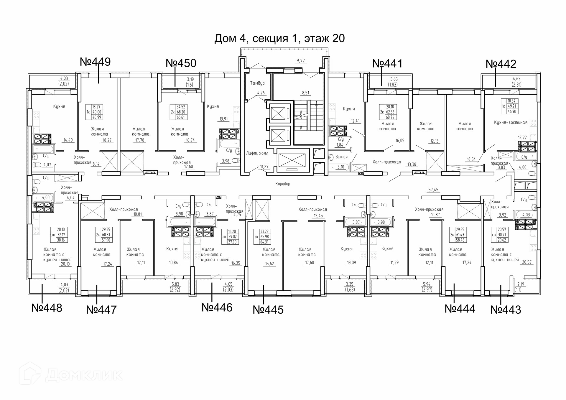 Площади квартир