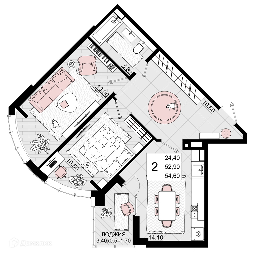 - ✅ Кухня: 14.2 м² — идеальна для семейных ужинов.