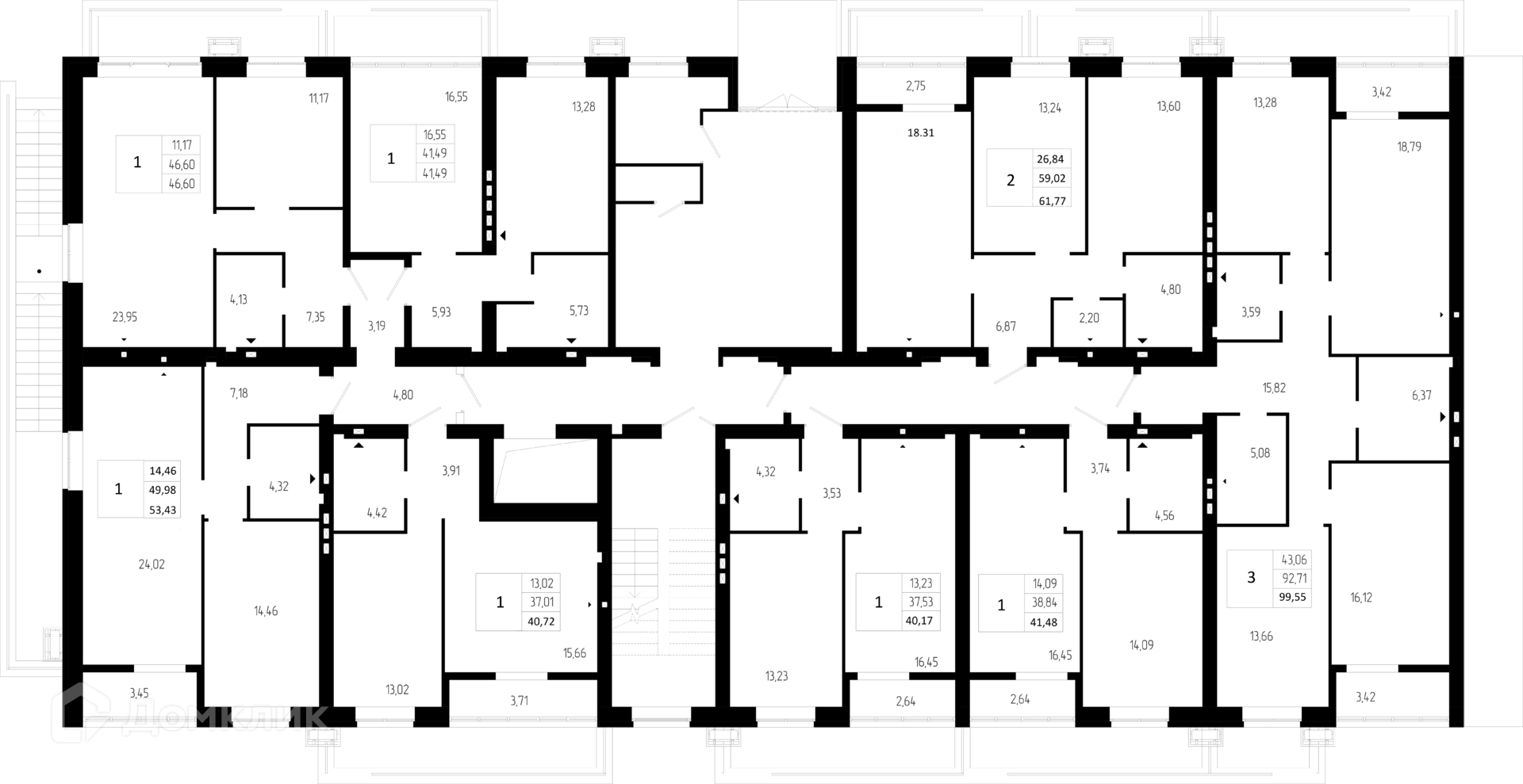 Площади квартир