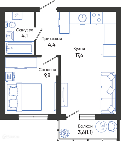 Предлагается 1-комнатная квартира в современном жилом комплексе "ЖК ОБЛАКА" 🏢. Квартира расположена на 2-м этаже 25-этажного дома. Прекрасный выбор для инвестиций.