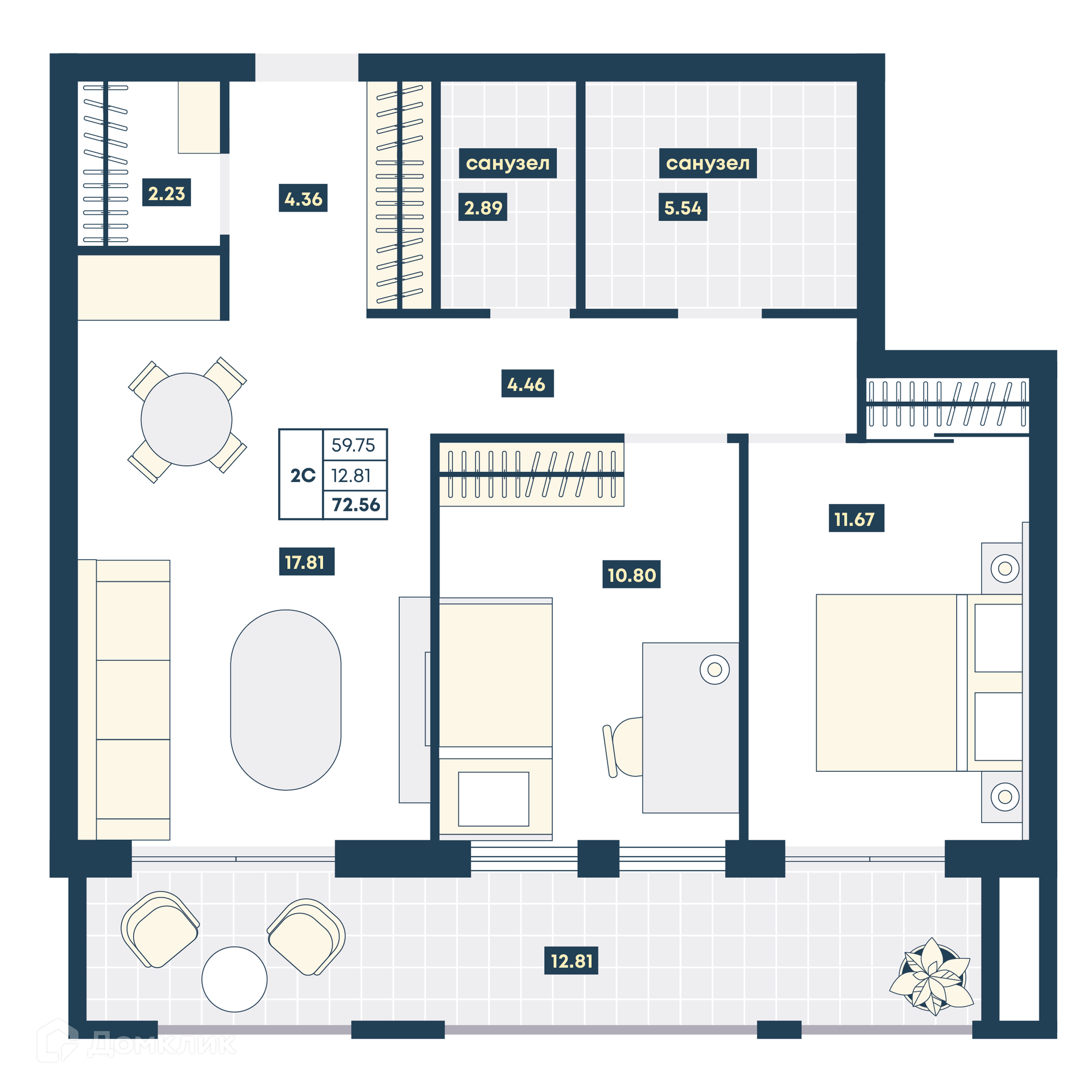Планировка 2 комн. в ЖК Лучи