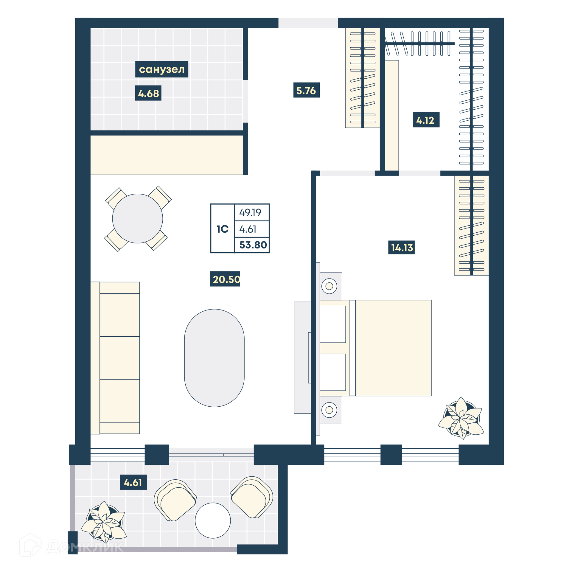 Планировка 1 комн. в ЖК Лучи