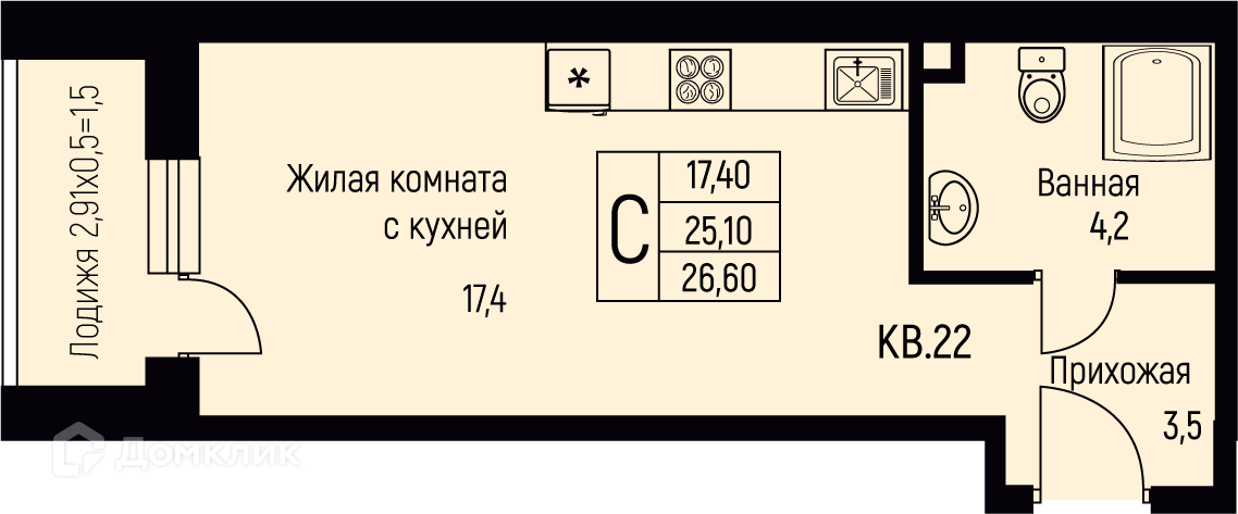 26.4 - 70.6 м²