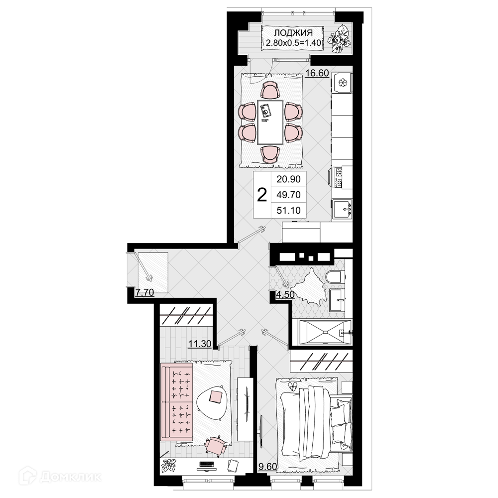 - ✅ Кухня: 13.3 м² — эргономичное пространство.