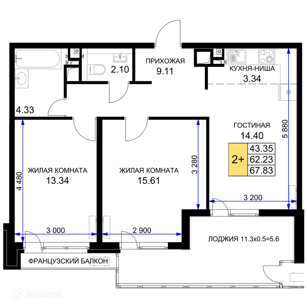 Площади квартир