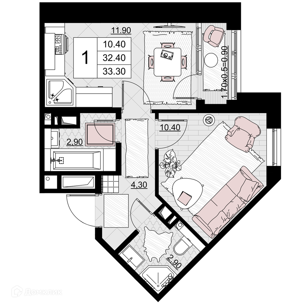Планировка 1 комн. в ЖК Песчаный
