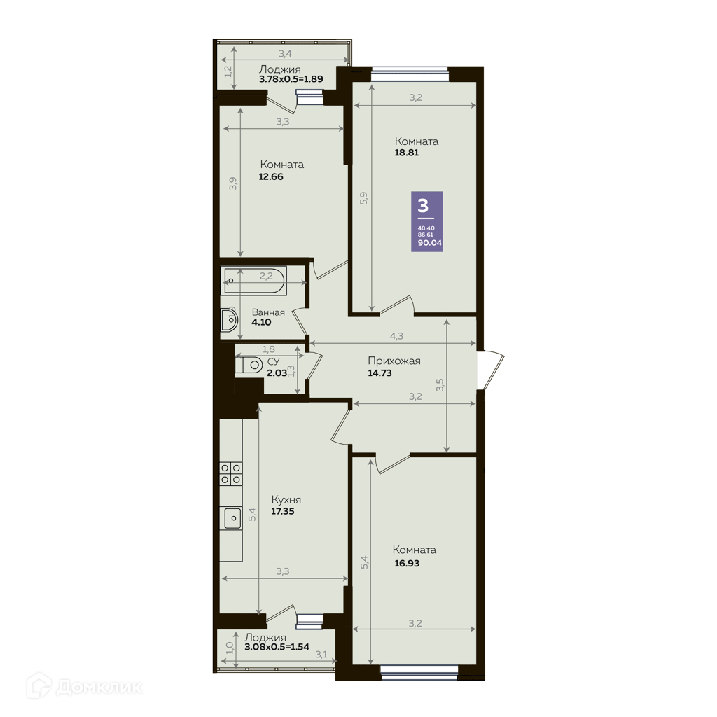 Площади квартир