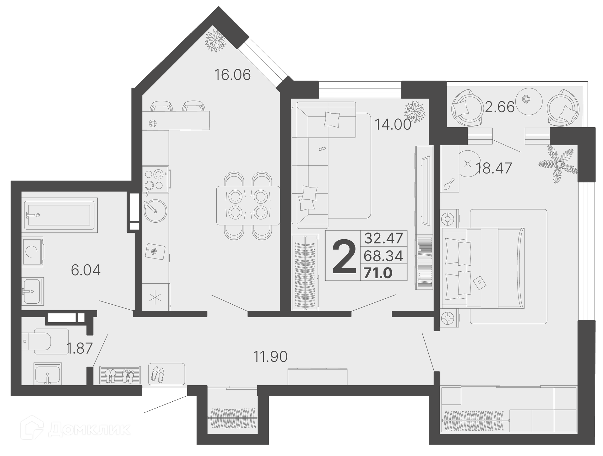 - Общая площадь: 69.67 м²
