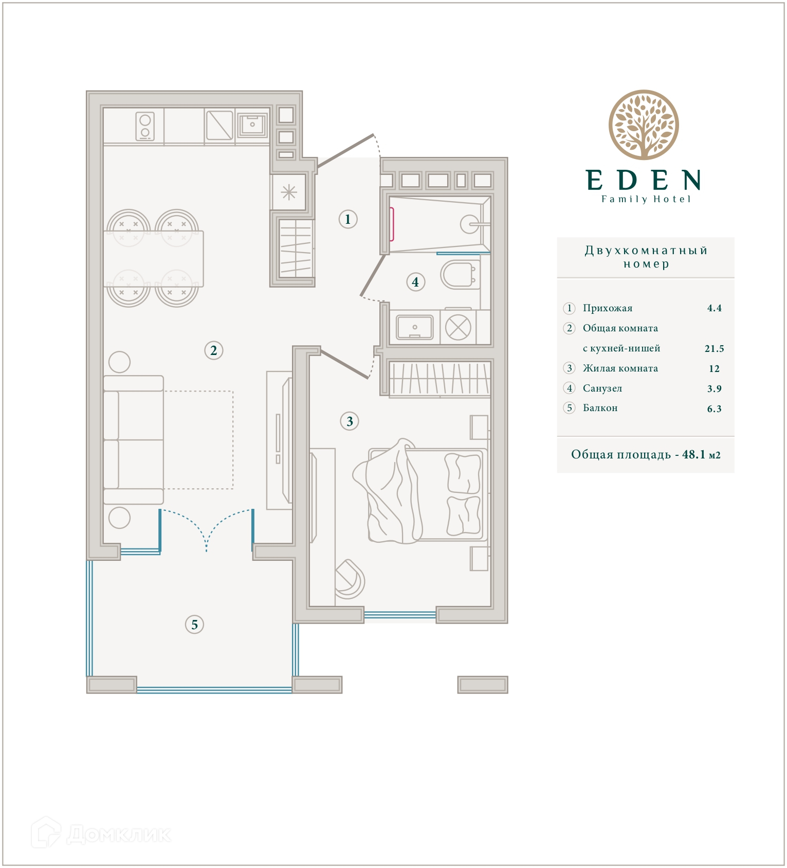 - ✅ Общая площадь: 48.2 м².